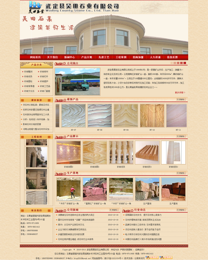 武定縣昊田石業(yè)有限公司成立于1999年2月,是一家集礦山開采、生產(chǎn)加工、銷售為一體的專業(yè)化石材公司。公司擁有紅砂巖礦山一座,面積1800畝,年開采8000m3;黃砂巖礦山一座,年開采量10000m3。公司位于108國(guó)道3265公里處,占地面積24000多平方米,擁有大型切石機(jī)十臺(tái)、小切十臺(tái)及多種石材現(xiàn)代化加工設(shè)備,年加工各類板材30余萬(wàn)平方米、加工各類異性材1000多立方,是云南省較具規(guī)模的石材企業(yè)之一。