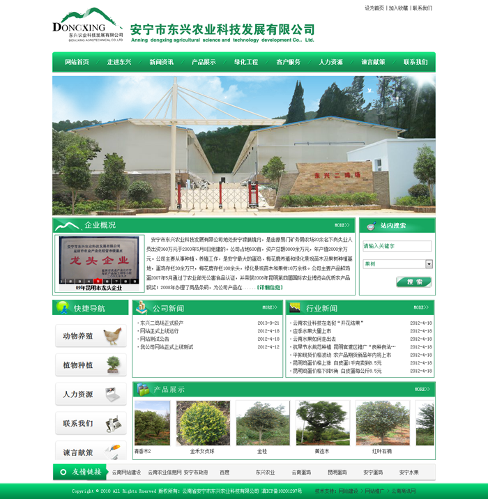 安寧市東興農(nóng)業(yè)科技發(fā)展有限公司地處安寧祿脿境內(nèi),是由原易門礦務(wù)局農(nóng)場20余名下崗失業(yè)人員出資360萬元于2003年5月8日組建的。公司占地600畝,資產(chǎn)總額3000余萬元,年產(chǎn)值2000余萬元。公司主要從事種植、養(yǎng)殖工作,是安寧最大的蛋雞、梅花鹿養(yǎng)殖和綠化景觀苗木及果樹種植基地,蛋雞存欄30余萬只,梅花鹿存欄100余頭,綠化景觀苗木和果樹10萬余株。