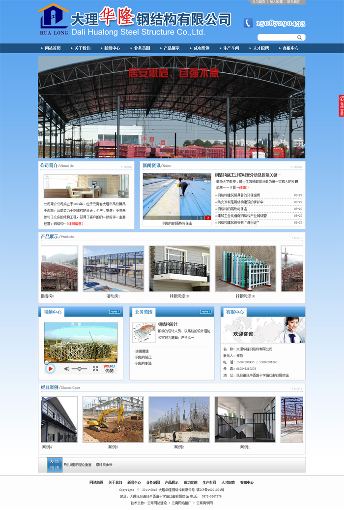 公司成立于2004年,位于云南省大理市鳳儀鎮(zhèn)鳳中西路,公司致力于鋼結(jié)構(gòu)的設(shè)計(jì)、生產(chǎn)、安裝,多年來參與了眾多的結(jié)構(gòu)工程,獲得了客戶的的一致好評。