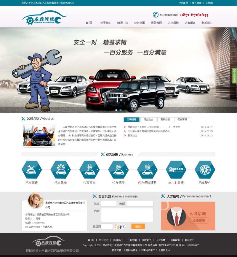 云南昆明市關(guān)上永鑫進(jìn)口汽車維修有限責(zé)任公司主要是以進(jìn)口汽車維修、汽車保養(yǎng);代客審車;代辦保險;代辦理賠;24小時救援等汽車維修業(yè)務(wù)。公司憑借產(chǎn)品優(yōu)越的性能價格比和完善的售后服務(wù)在同行業(yè)中脫穎而出。公司成立了以市場為導(dǎo)向,以質(zhì)量為標(biāo)準(zhǔn),以客戶滿意為宗旨的生產(chǎn)、銷售的服務(wù)體系。以質(zhì)量求生存,創(chuàng)新求進(jìn),為消費(fèi)者提供高質(zhì)、經(jīng)典的品牌產(chǎn)品。我們堅持技術(shù)和服務(wù)并重的思想,遵守規(guī)范、客觀、公正、實事求是的原則,信守協(xié)議,重質(zhì)量、求效率。