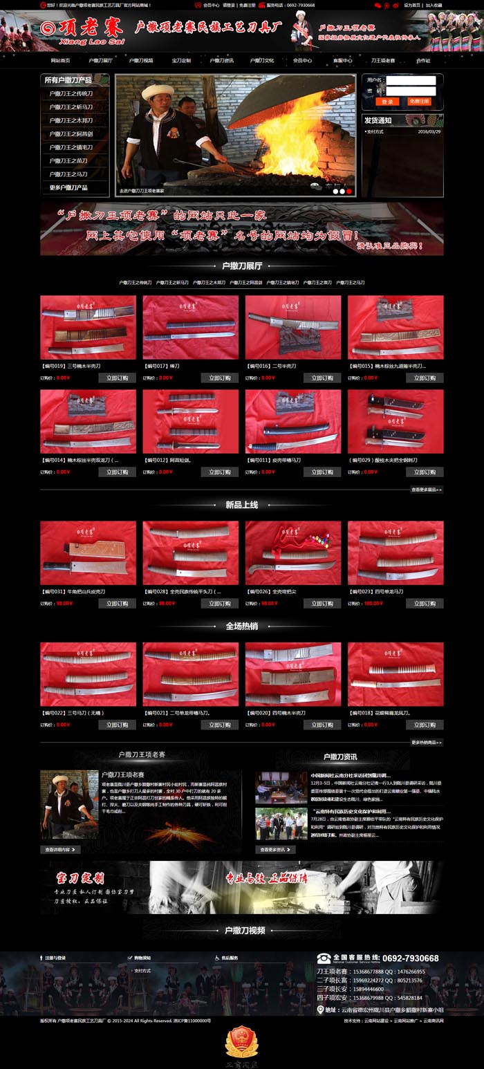 項老賽從小跟著父親學(xué)習(xí)打刀的技藝,他聰慧好學(xué),得到父親的真?zhèn)鳎?14 歲就可以自己獨立操作。在學(xué)習(xí)父親打刀技藝的同時,項老賽不斷鉆研,在刀的外觀、質(zhì)地、圖案、包裝上下苦功夫。通過不斷改進(jìn),印有八卦圖樣 - 項氏刀 - 的各類刀具,由于做工精致、質(zhì)地精良、外形美觀、別具特色,深受人們的喜愛,遠(yuǎn)銷內(nèi)蒙、青海、西藏、四川等地,在緬甸、泰國、印度和日本等國也有一定的市場。如今產(chǎn)品多達(dá) 50 多種 120 余個花色,有鐮刀、水果刀、菜刀、腰刀、斧頭、砍柴刀、剝皮刀、剔骨刀、狩獵刀、屠宰刀等生活工具刀,還有樸刀、馬刀、景頗刀、苗刀、緬刀和藏刀等民族工藝禮品刀;刀把有棕絲把、酸枝木把、印度紅木把、花梨木把、雞翅木把、烏木把、小葉紫檀木把、鹿角把、牛角把、鋼把、銅把和緬銀把等;刀鞘主要有紅豆杉、楠木、烏木、緬銀等半殼或全殼等,種類繁多,工藝獨特。